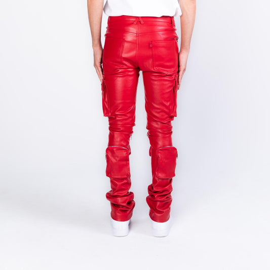 "NEVER LOOK BACK" RED CARGO FLARE STACK LEATHER PHEELINGS