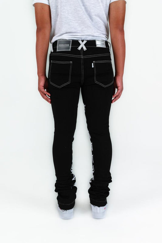 "AGAINST ALL ODDS" BLACK FLARE STACK DENIM
