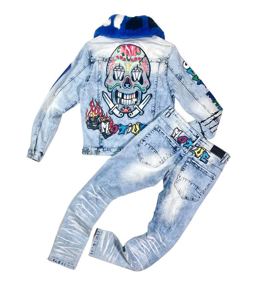 Graffiti Denim W/ Rhinestone Detail Jeans